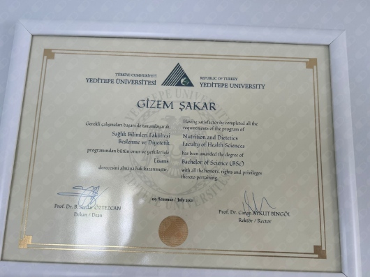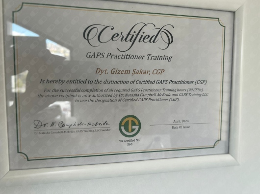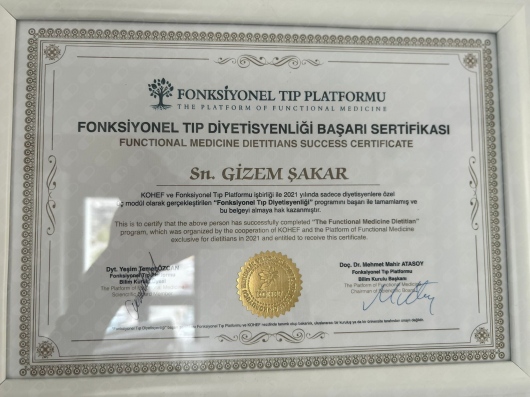 Diyetisyen Gizem Şakar; Diyetisyen Gizem Şakar kliniğinde hizmet vermektedir. Uzmanlık alanlarında ; Fonksiyonel Tıp Diyetisyenliği sertifikasına ve GAPS diyetisyenliği eğitimi sertifikasına sahiptir. Otoimmün hastalıklarda (Haşimato, Fibromiyalji, Tip 1 Diyabet vb) Beslenme ve Fitoterapi ile ilgilenmektedir.